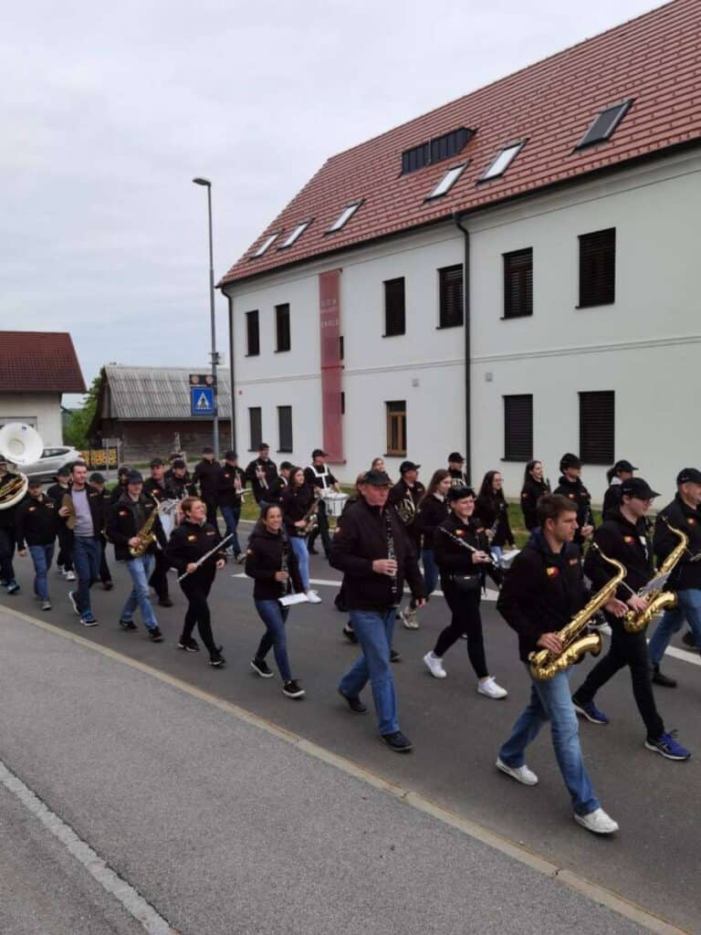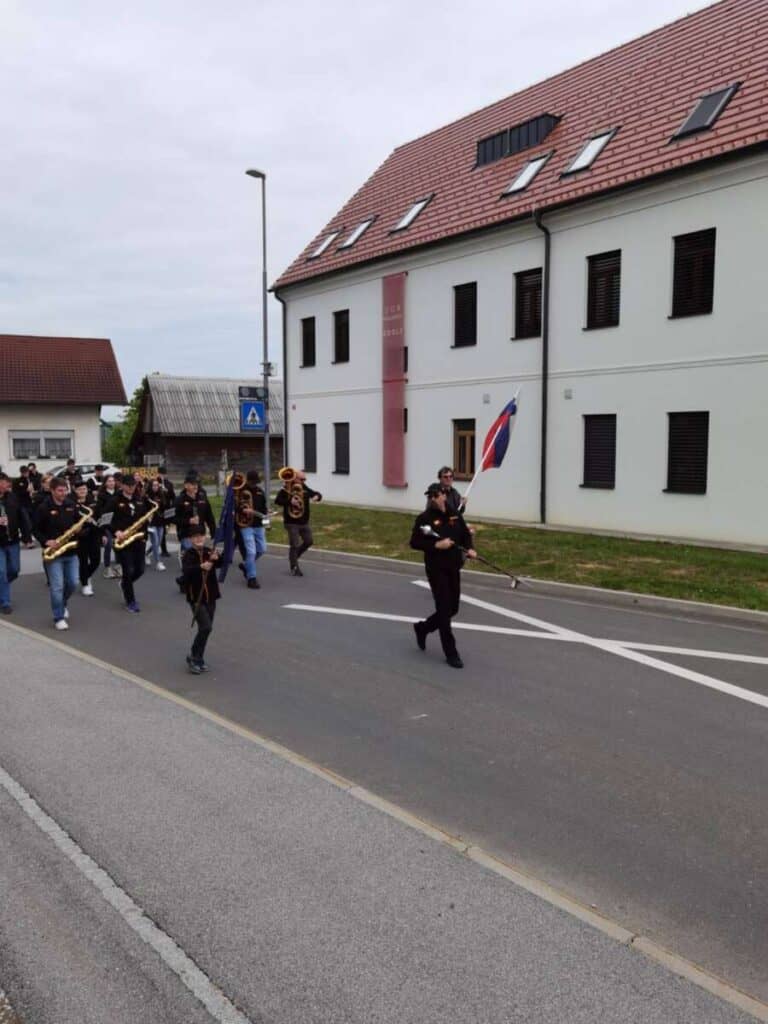 1. maja dopoldne pa nas je obiskal Pihalni orkester Krško in nas počastil s svojo tradicionalno budnico pod taktirko našega krajana in hkrati predsednika Krajevne skupnosti Zdole, Dejana Žnideršiča.